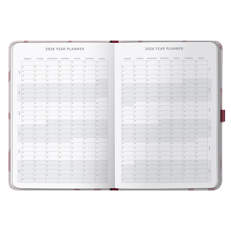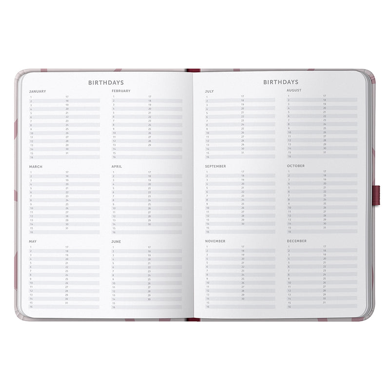 This perfect day to a page diary features handy planners and plenty of space for notes to help you make the most of every moment.