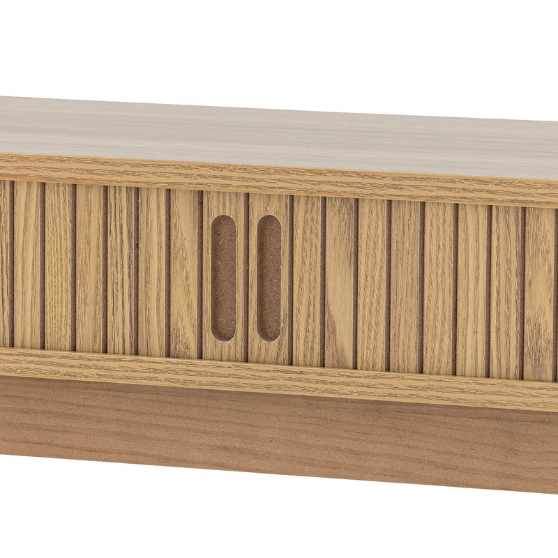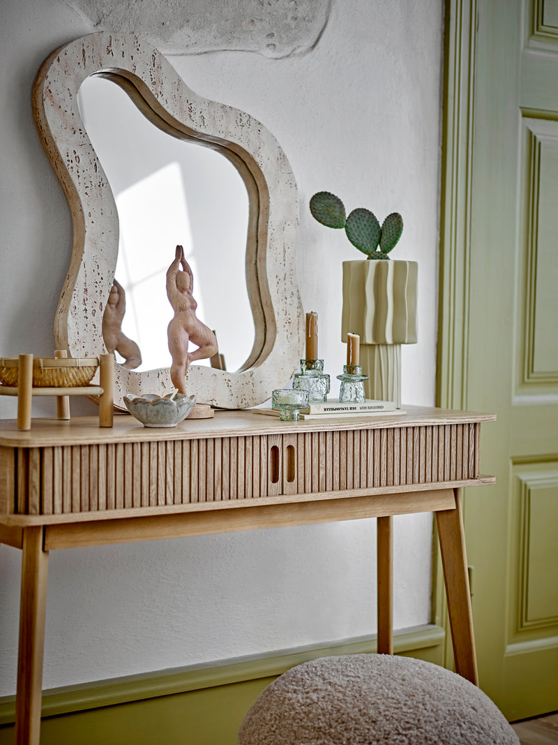 The Salento Console Table by Bloomingville is a beautiful combination of functionality and classic Nordic design. The table features practical sliding doors for easy access to storage. It is ideal as a desk for the home office, a console table in the entryway for storing keys and other small items, or even as a makeup table. The Nordic design complements any decor, making the piece highly versatile.
