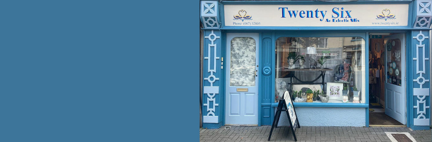 We are a small and busy independent homeware business. We love to support local, independent artisans and artists. Twenty Six has a green heart, and this commitment to sustainability only strengthened during Margaret’s time as the Distributor for Annie Sloan Chalk Paint over the last ten years.